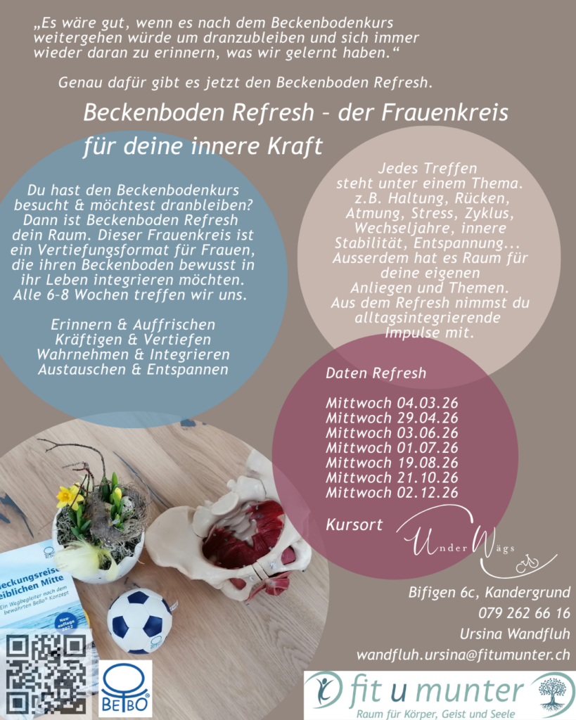 Hier findest du sie: in unseren Bewegungs- und Beckenbodenkursen, in Klangangeboten, Bewusstseinscoaching & Hypnosetherapie.